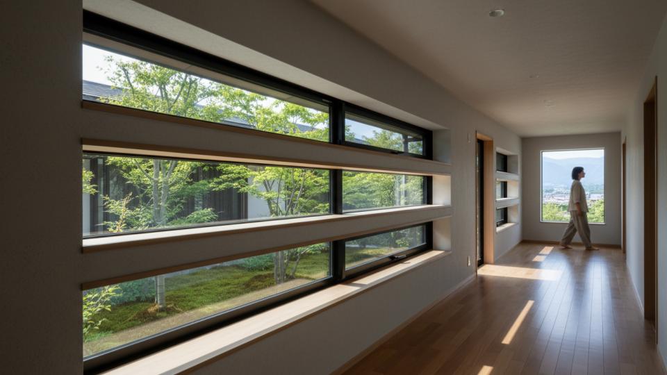 廊下に設置するフィックス窓は、住まいの明るさとデザイン性を劇的に向上させます。