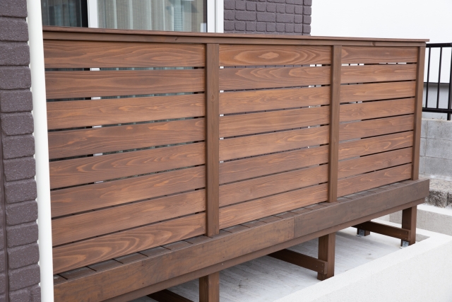 斜めの土地にデッキを作る際、床面が地面から高い位置に来ることが多いため、転落防止のためのフェンスは必須と言えます。